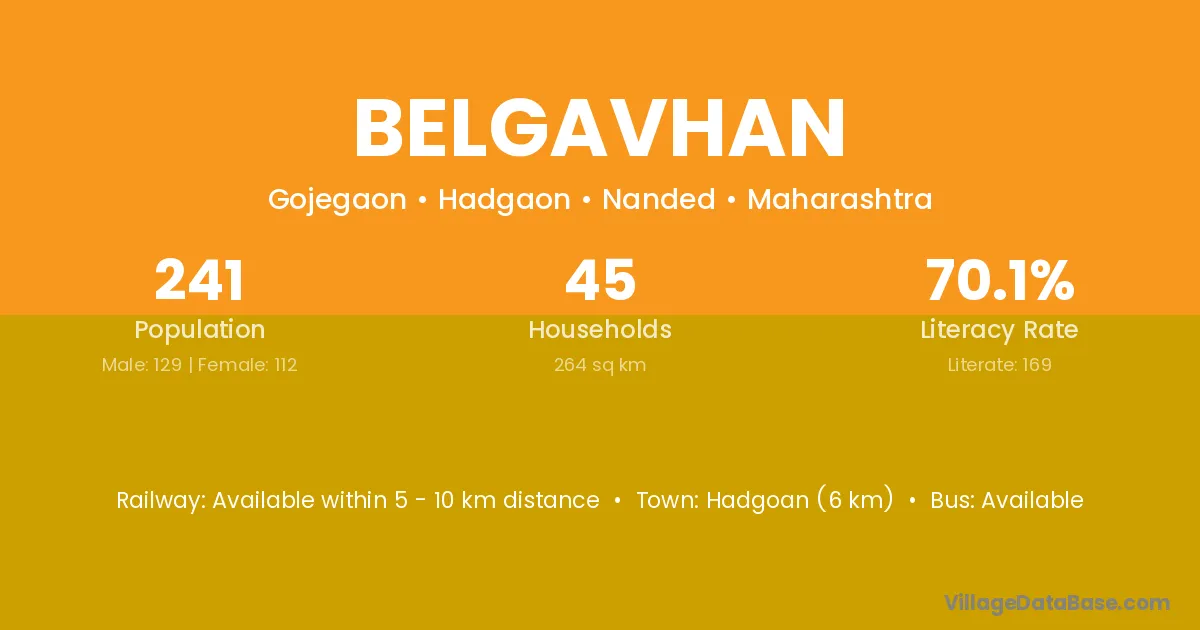 Belgavhan village has a total population of 241 people, of which 129 are males and 112 are females.