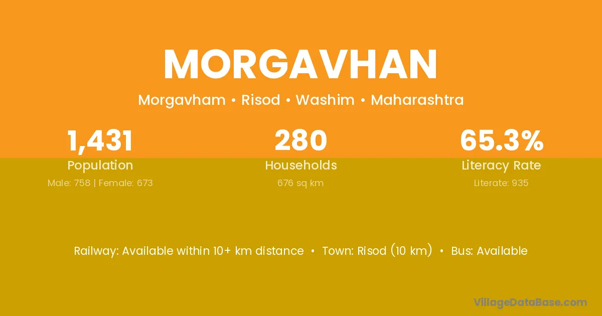 Nanded (60 km) is the nearest town to Morgavhan village for major economic activities and is located approximately 60 km away.