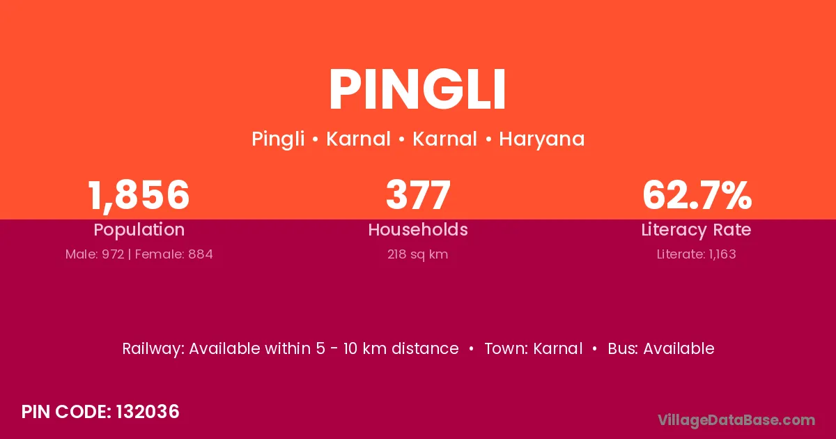 Pingli village has a total population of 1,897 people, of which 977 are males and 920 are females.
