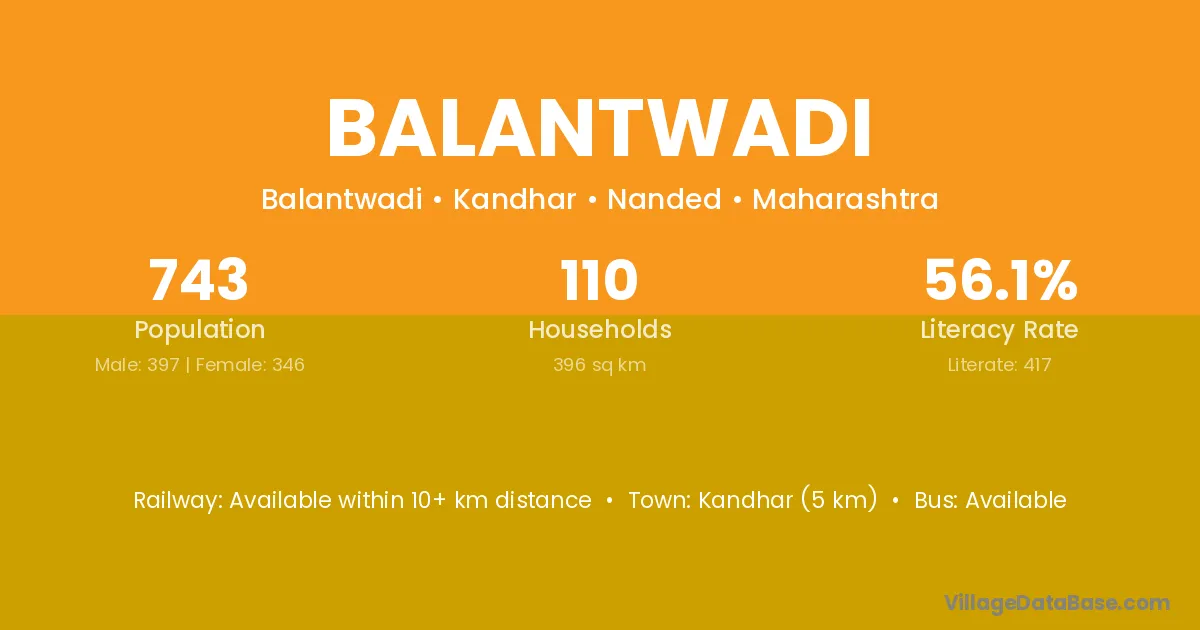 Kandhar (5 km) is the nearest town to Balantwadi village for major economic activities and is located approximately 5 km away.