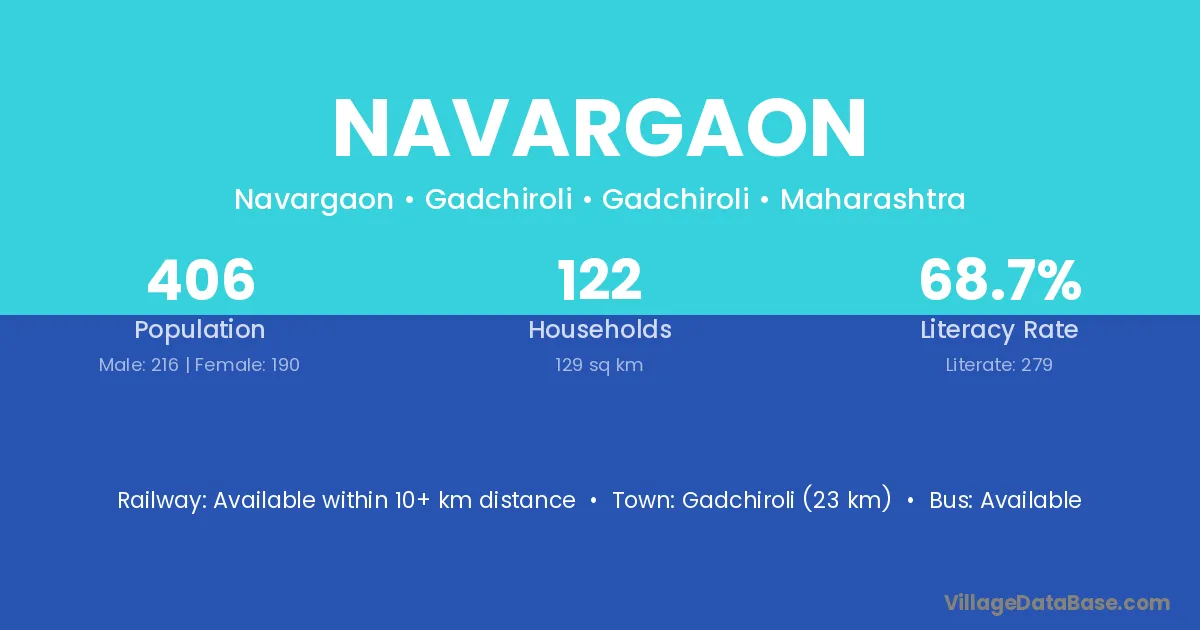 Kinwat (49 km) is the nearest town to Navargaon village for major economic activities and is located approximately 49 km away.