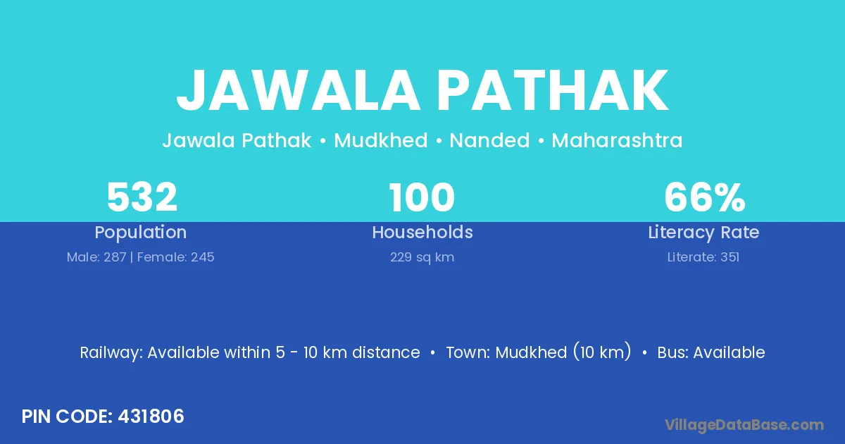 Mudkhed (10 km) is the nearest town to Jawala Pathak village for major economic activities and is located approximately 10 km away.