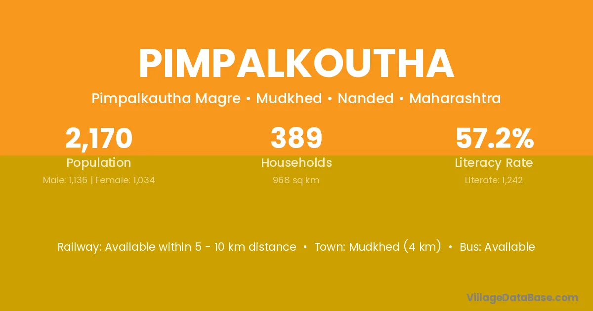 Mudkhed (4 km) is the nearest town to Pimpalkoutha village for major economic activities and is located approximately 4 km away.