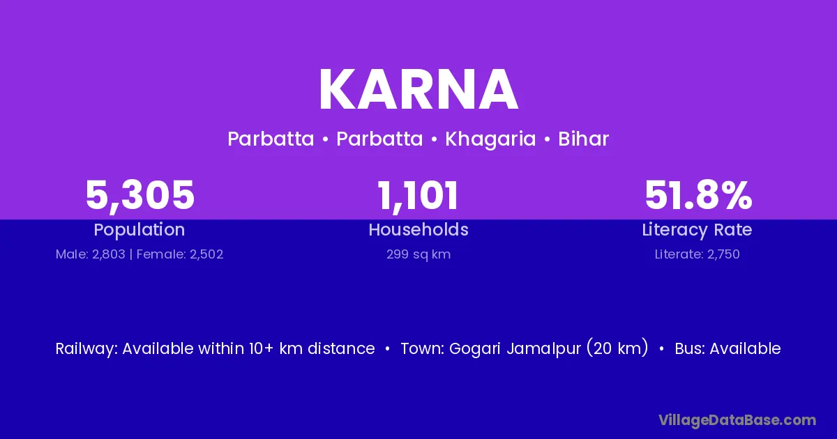 Mukhed (27 km) is the nearest town to Karna village for major economic activities and is located approximately 27 km away.