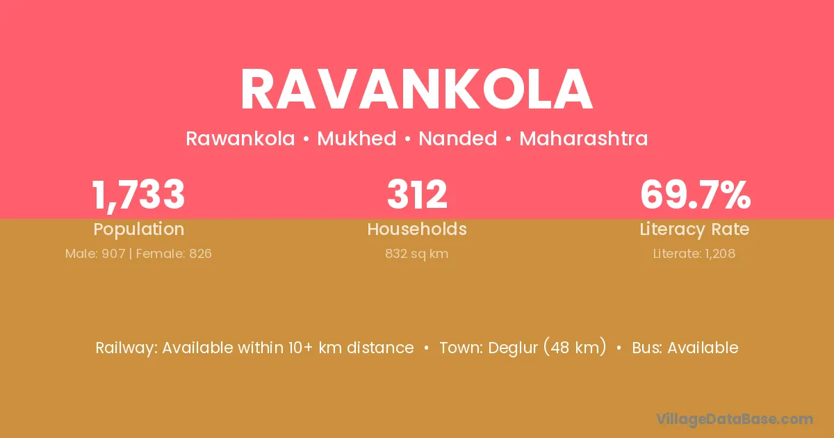 Deglur (48 km) is the nearest town to Ravankola village for major economic activities and is located approximately 48 km away.