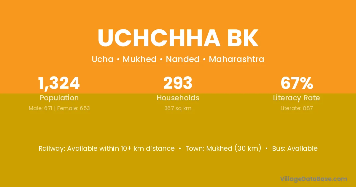 Mukhed (30 km) is the nearest town to Uchchha Bk village for major economic activities and is located approximately 30 km away.