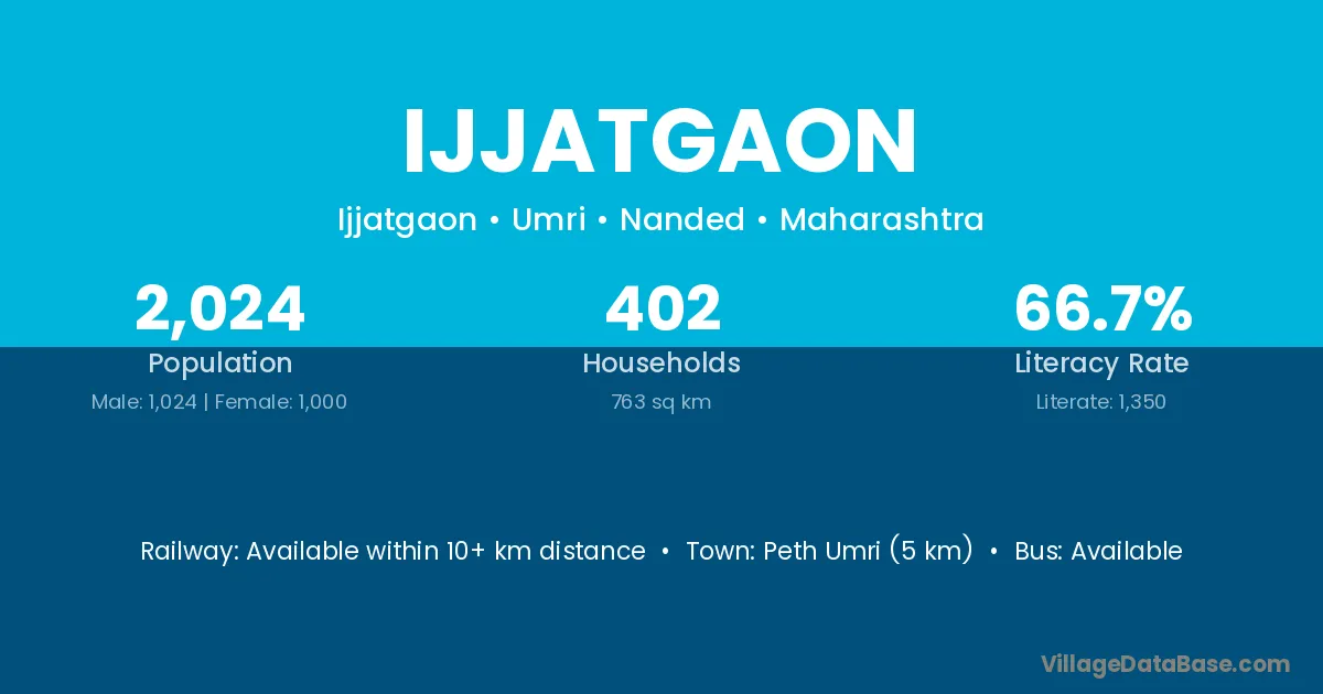 Peth Umri (5 km) is the nearest town to Ijjatgaon village for major economic activities and is located approximately 5 km away.