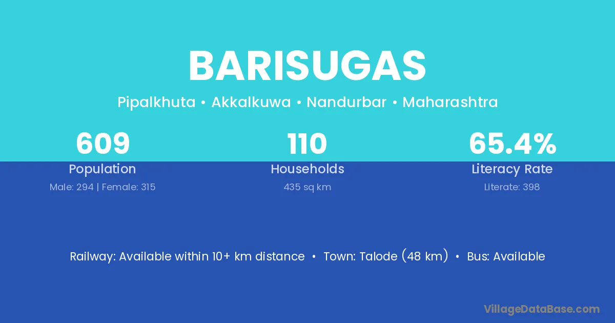 Barisugas village is located in the Akkalkuwa Tehsil of the Nandurbar district in Maharashtra .