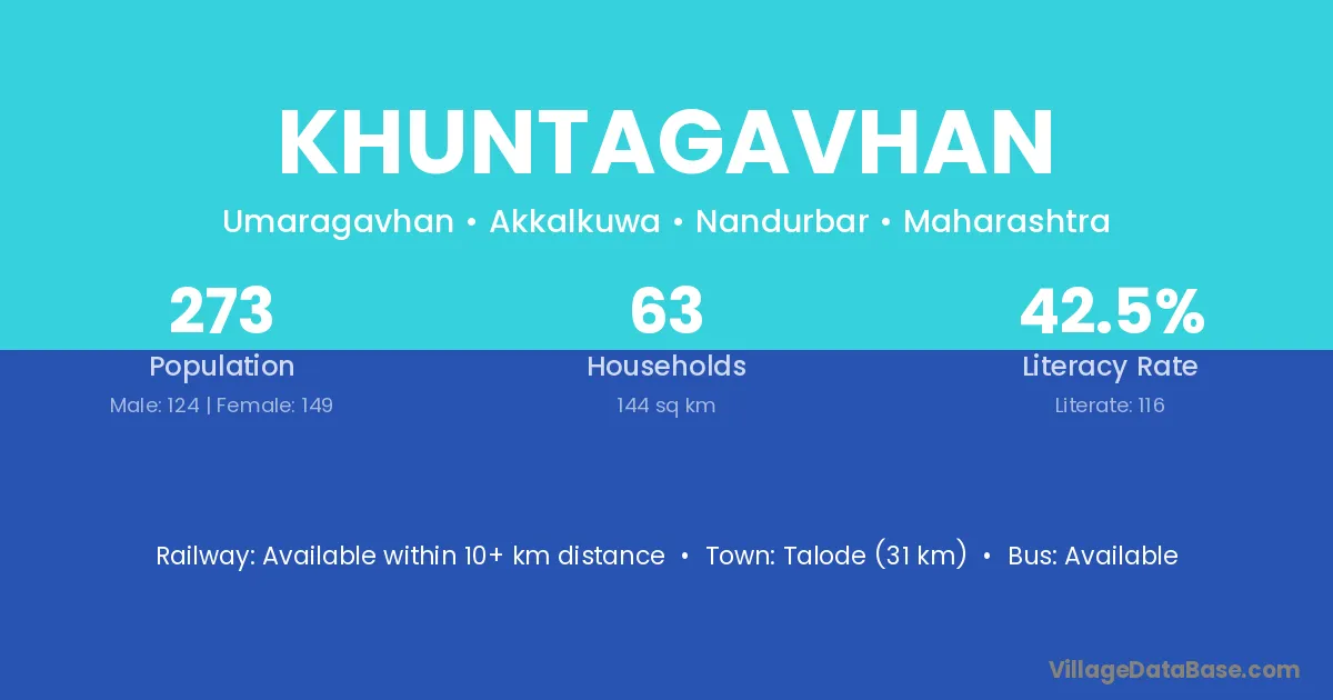 Khuntagavhan village has a total population of 273 people, of which 124 are males and 149 are females.