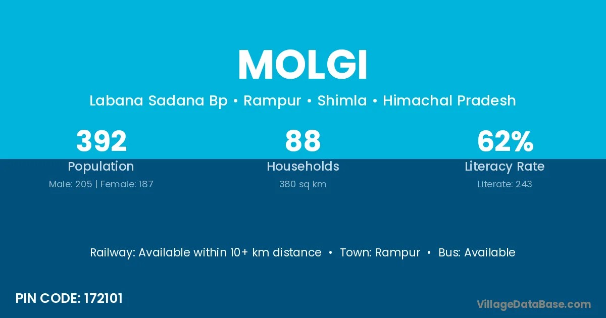 Talode (32 km) is the nearest town to Molgi village for major economic activities and is located approximately 32 km away.