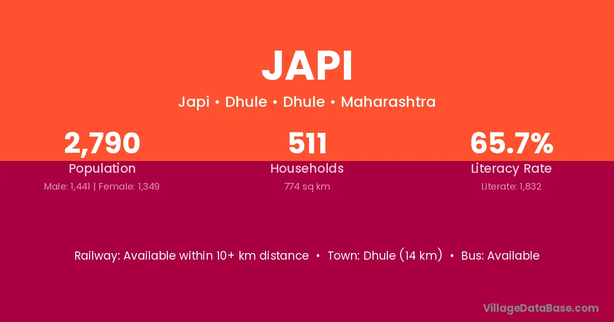 Shahade (65 km) is the nearest town to Japi village for major economic activities and is located approximately 65 km away.
