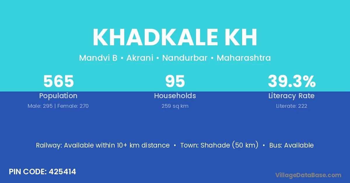 Shahade (50 km) is the nearest town to Khadkale Kh village for major economic activities and is located approximately 50 km away.