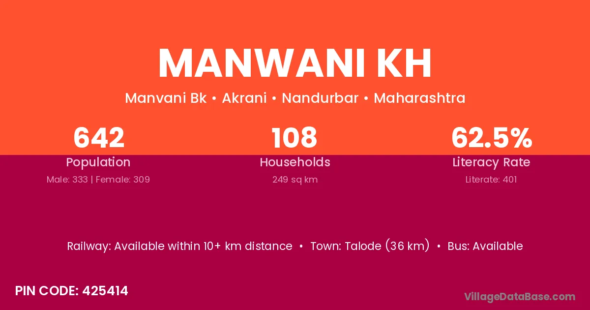 According to Census 2011 information, the village code of Manwani Kh village is 425414.
