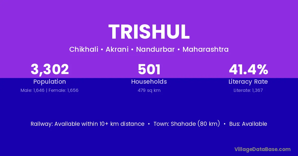 Shahade (80 km) is the nearest town to Trishul village for major economic activities and is located approximately 80 km away.