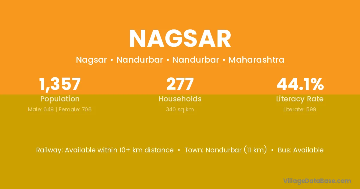 Nandurbar (11 km) is the nearest town to Nagsar village for major economic activities and is located approximately 11 km away.
