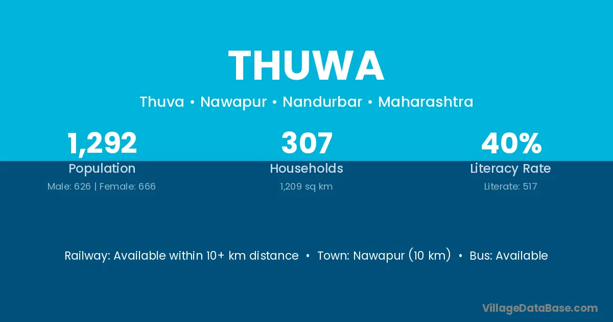 Thuwa village has a total population of 1,292 people, of which 626 are males and 666 are females.