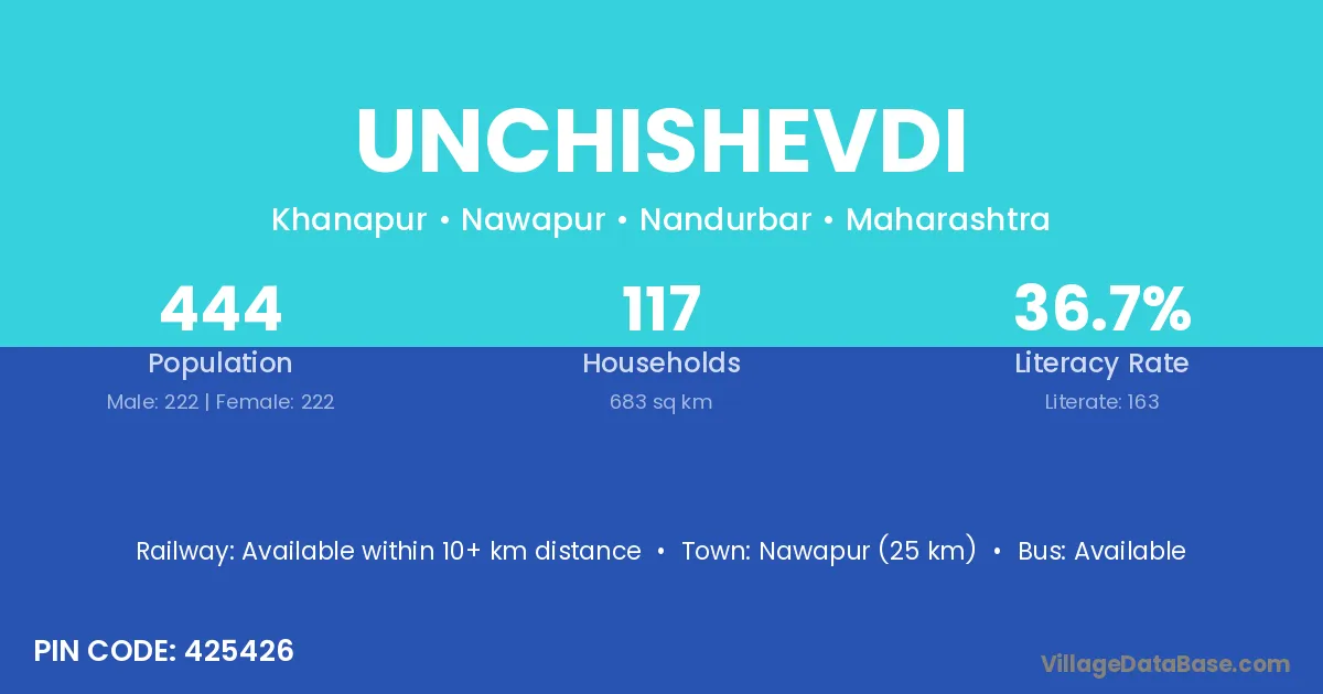 Nawapur (25 km) is the nearest town to Unchishevdi village for major economic activities and is located approximately 25 km away.
