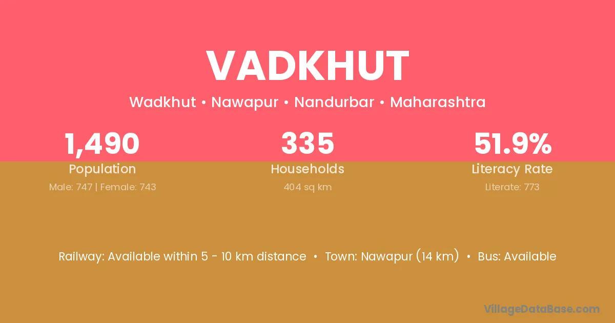 Vadkhut village has a total population of 1,490 people, of which 747 are males and 743 are females.