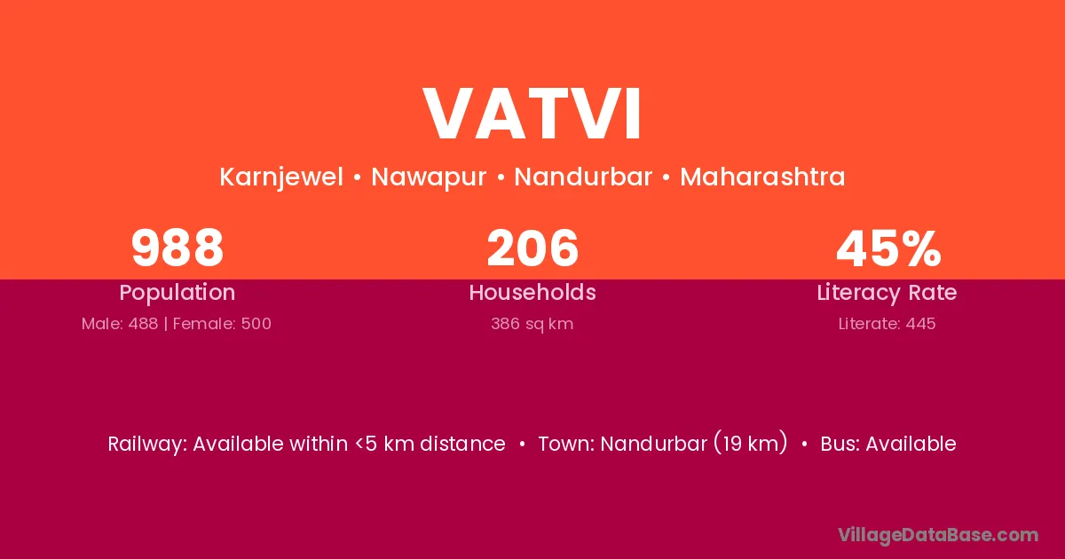 Nandurbar (19 km) is the nearest town to Vatvi village for major economic activities and is located approximately 19 km away.