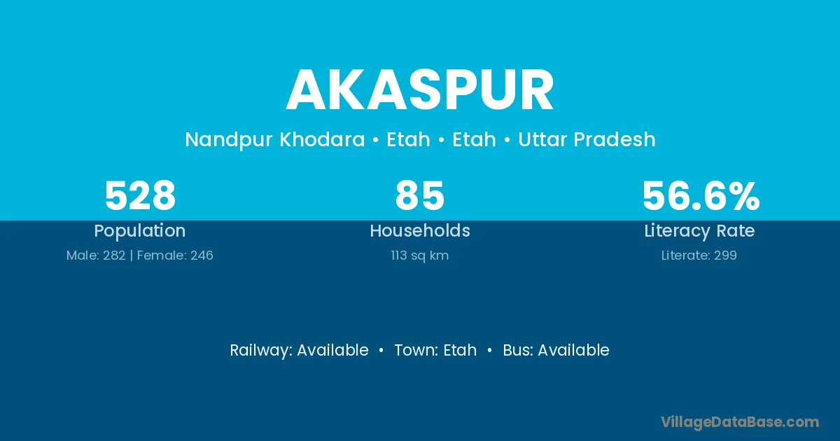 The literacy rate of Akaspur village is 36.28%. Male literacy stands at 42.11% and female literacy at 30.21%.