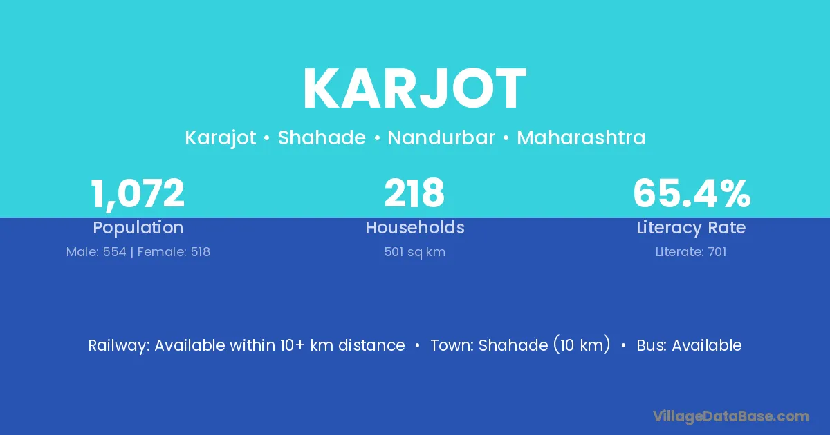Shahade (10 km) is the nearest town to Karjot village for major economic activities and is located approximately 10 km away.