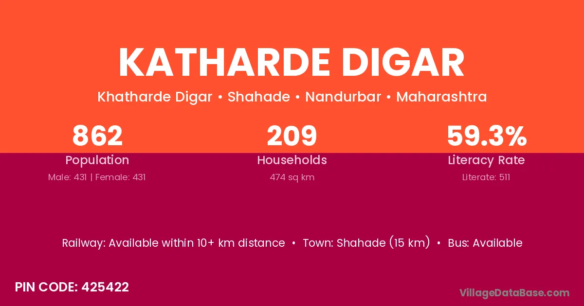 Shahade (15 km) is the nearest town to Katharde Digar village for major economic activities and is located approximately 15 km away.