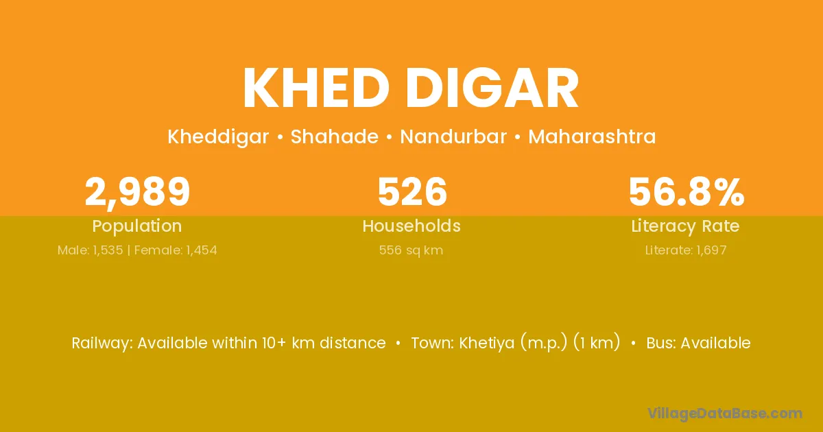 Khed Digar village has a total population of 2,989 people, of which 1,535 are males and 1,454 are females.
