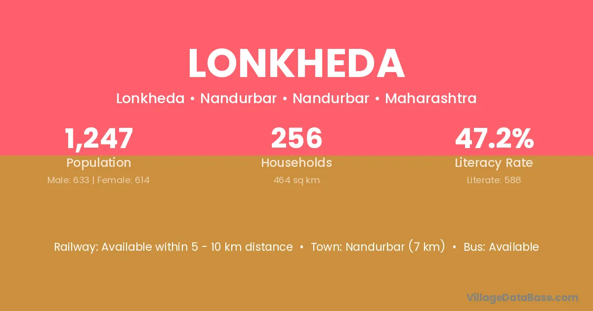 Shahade (5 km) is the nearest town to Lonkheda village for major economic activities and is located approximately 5 km away.