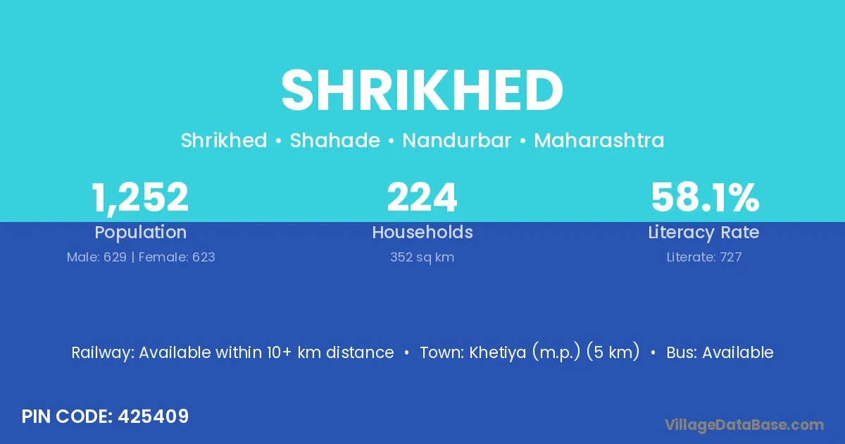 Shrikhed village has a total population of 1,252 people, of which 629 are males and 623 are females.