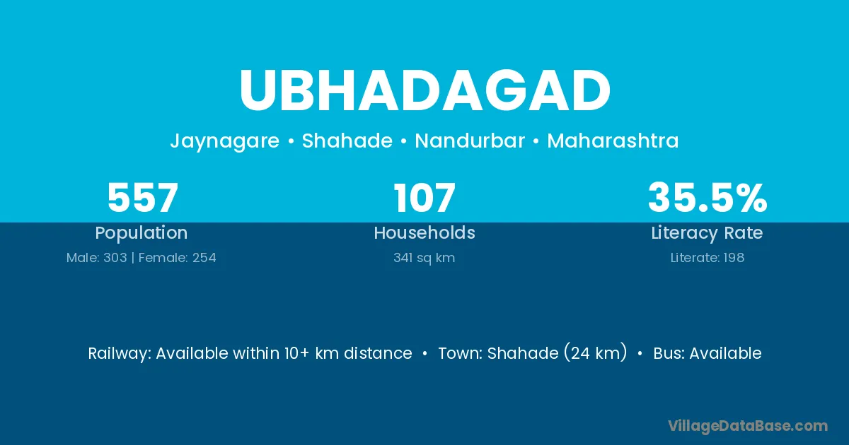Shahade (24 km) is the nearest town to Ubhadagad village for major economic activities and is located approximately 24 km away.