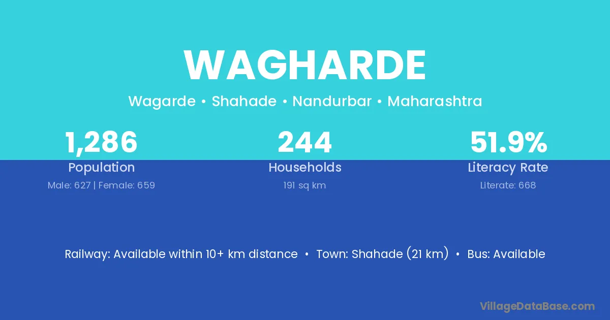 Shahade (21 km) is the nearest town to Wagharde village for major economic activities and is located approximately 21 km away.