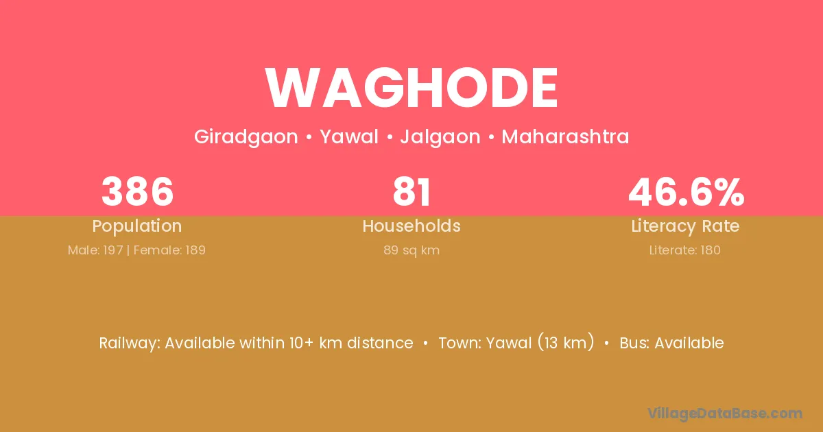 Shahade (13 km) is the nearest town to Waghode village for major economic activities and is located approximately 13 km away.