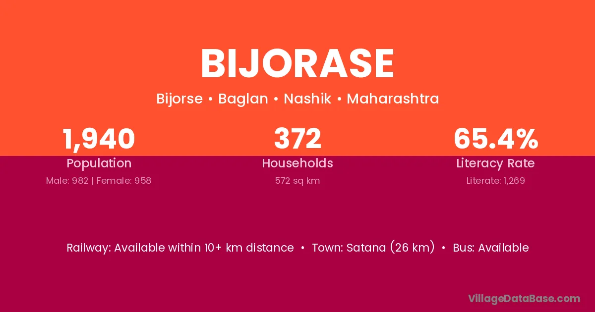 Satana (26 km) is the nearest town to Bijorase village for major economic activities and is located approximately 26 km away.