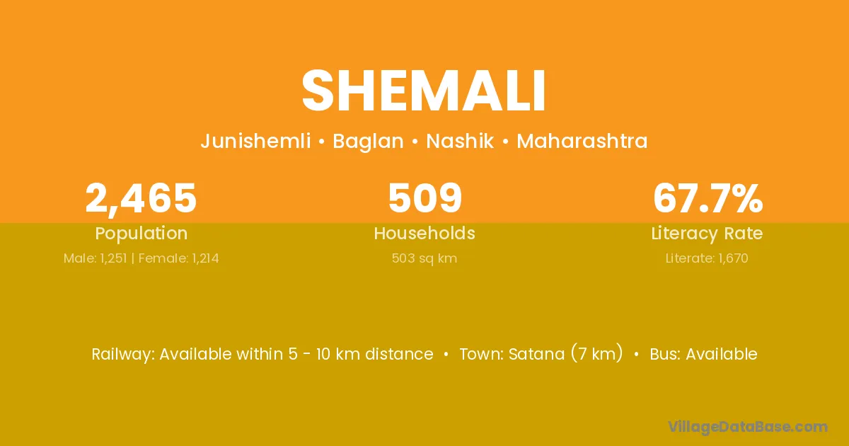 Satana (7 km) is the nearest town to Shemali village for major economic activities and is located approximately 7 km away.