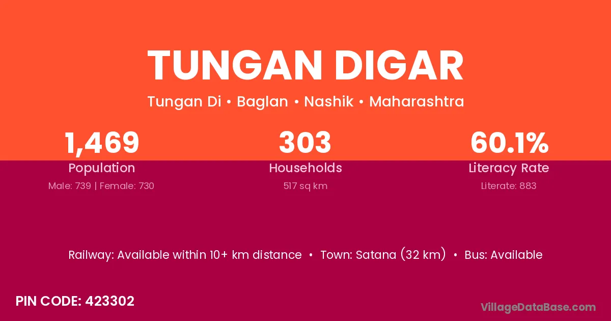 Satana (32 km) is the nearest town to Tungan Digar village for major economic activities and is located approximately 32 km away.