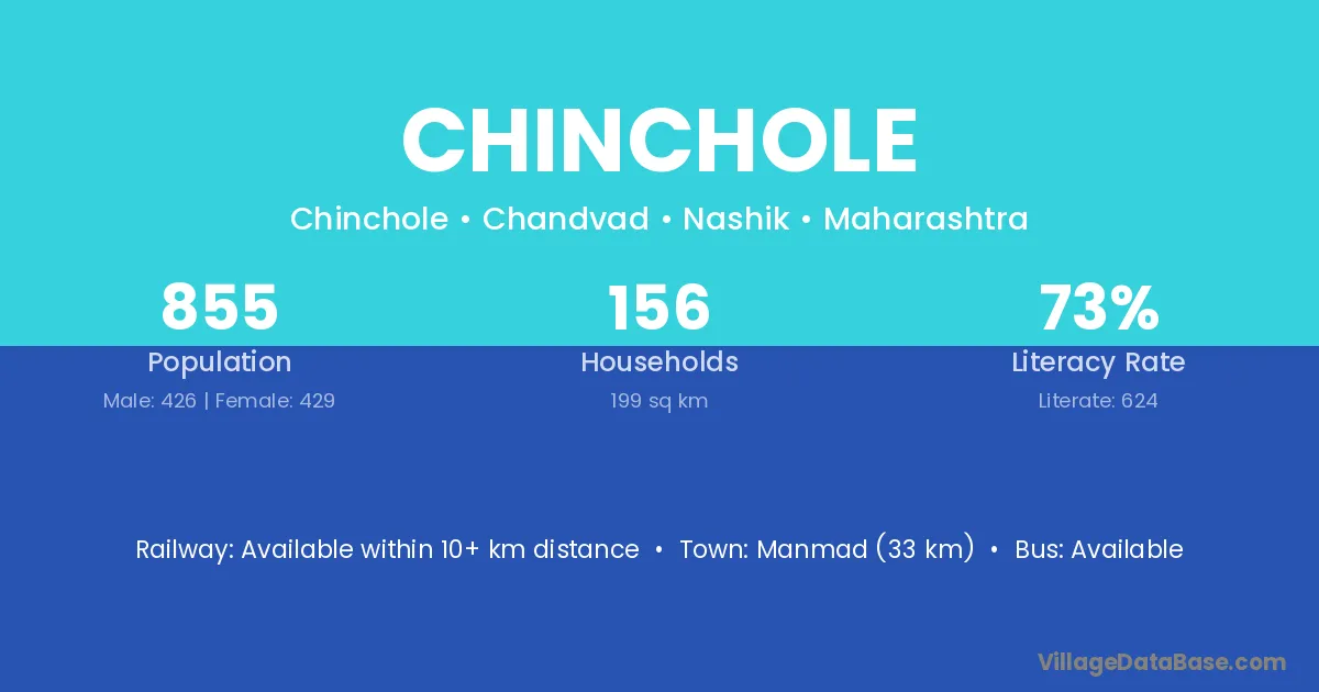 Manmad (33 km) is the nearest town to Chinchole village for major economic activities and is located approximately 33 km away.