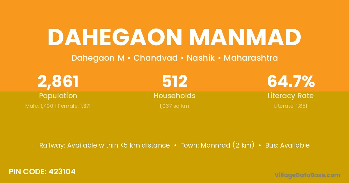 Dahegaon Manmad village has a total population of 2,861 people, of which 1,490 are males and 1,371 are females.