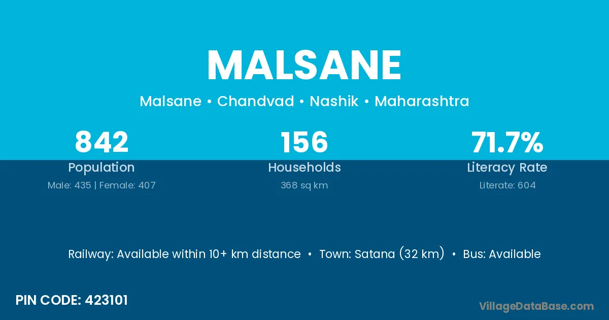 Satana (32 km) is the nearest town to Malsane village for major economic activities and is located approximately 32 km away.