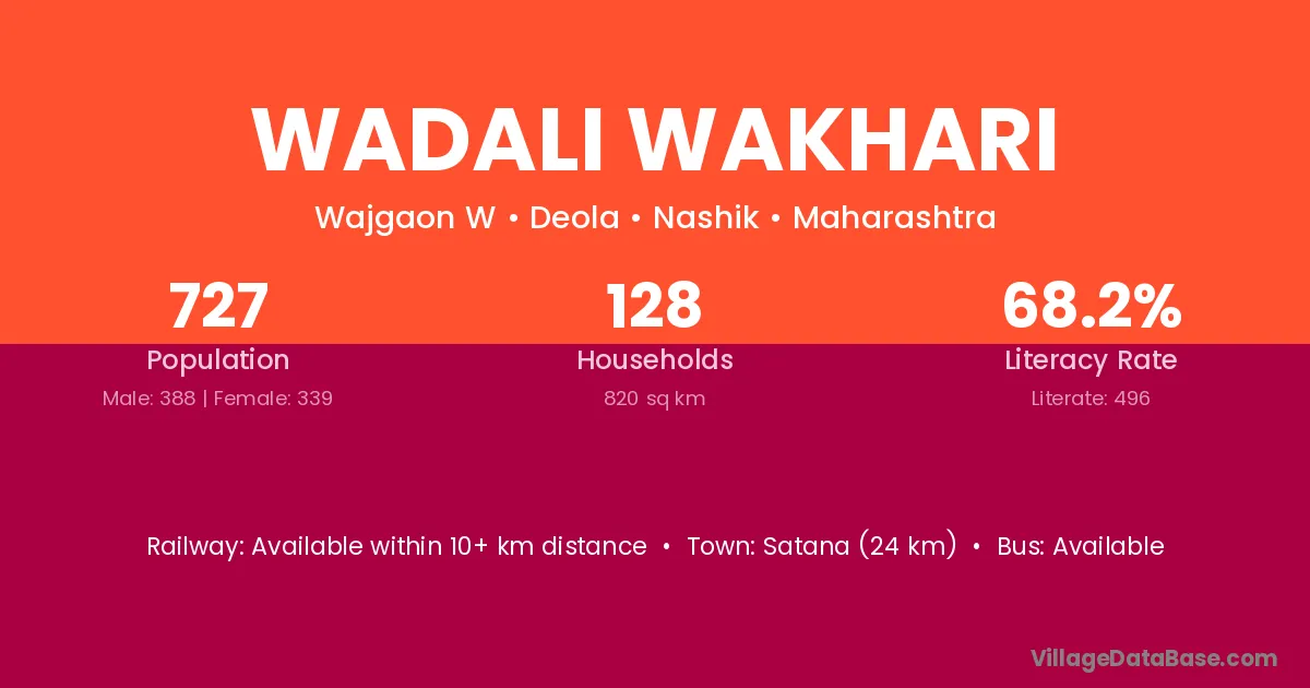 Satana (24 km) is the nearest town to Wadali Wakhari village for major economic activities and is located approximately 24 km away.