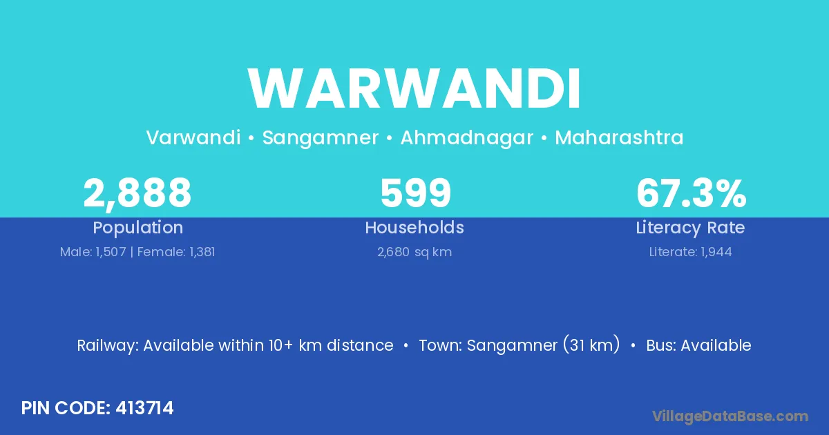 Satana (17 km) is the nearest town to Warwandi village for major economic activities and is located approximately 17 km away.