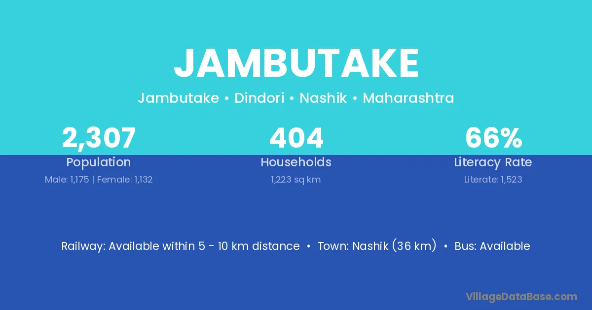 Nashik (36 km) is the nearest town to Jambutake village for major economic activities and is located approximately 36 km away.