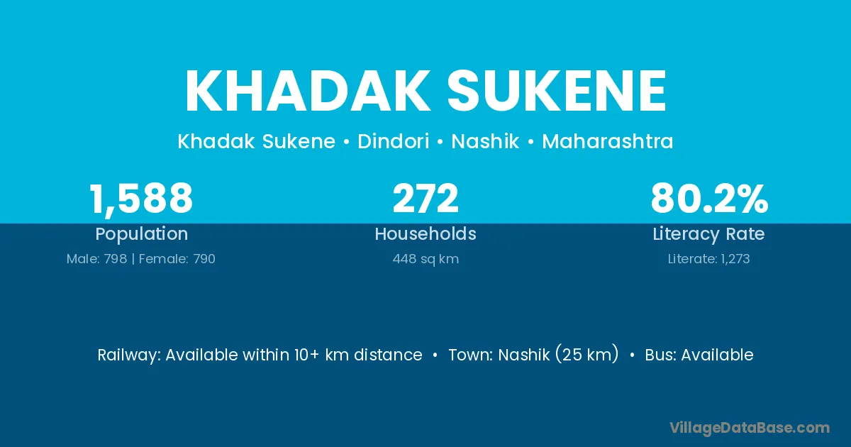 Khadak Sukene village has a total population of 1,588 people, of which 798 are males and 790 are females.