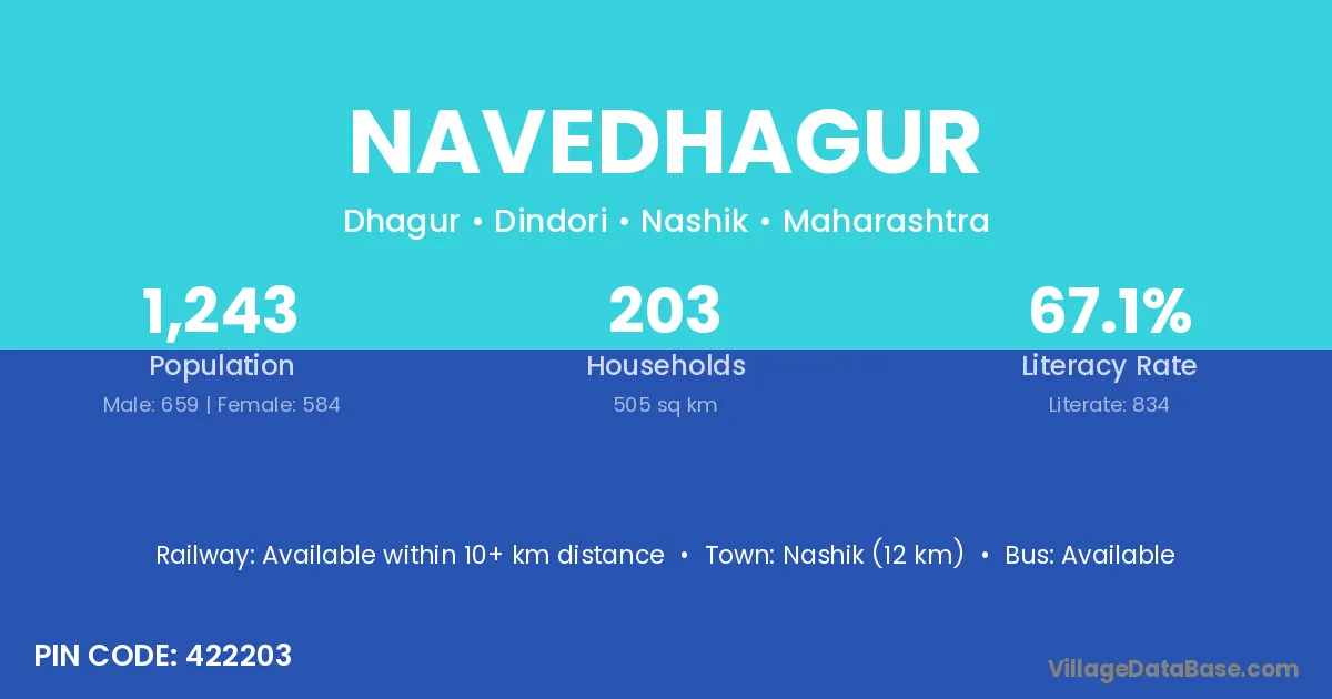 Nashik (12 km) is the nearest town to Navedhagur village for major economic activities and is located approximately 12 km away.