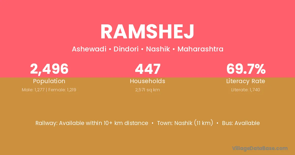 Nashik (11 km) is the nearest town to Ramshej village for major economic activities and is located approximately 11 km away.