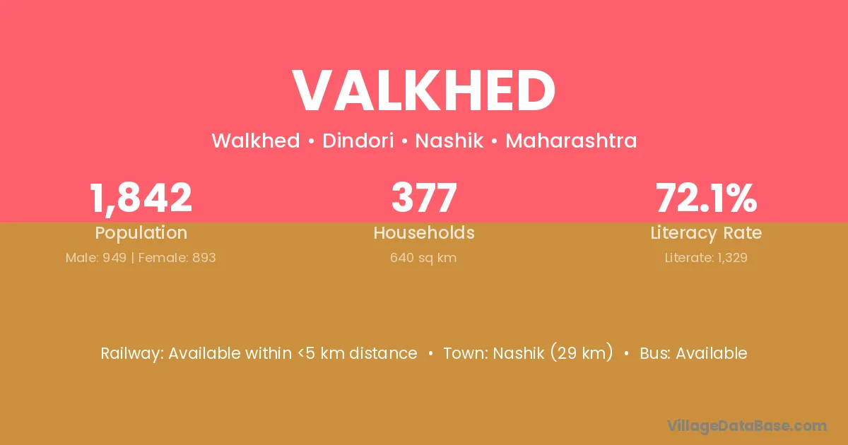 Nashik (29 km) is the nearest town to Valkhed village for major economic activities and is located approximately 29 km away.