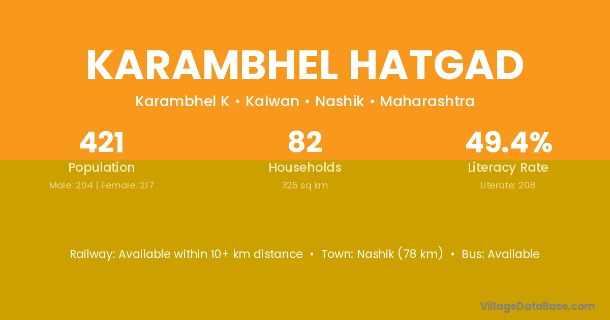 Nashik (78 km) is the nearest town to Karambhel Hatgad village for major economic activities and is located approximately 78 km away.