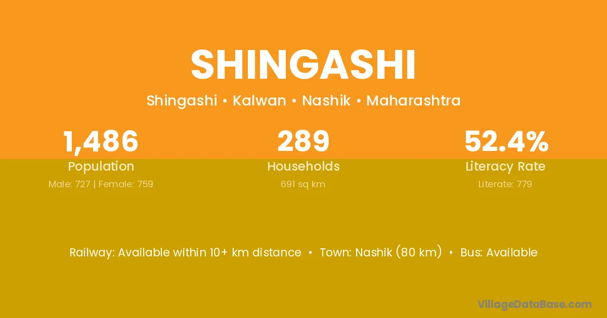 Nashik (80 km) is the nearest town to Shingashi village for major economic activities and is located approximately 80 km away.