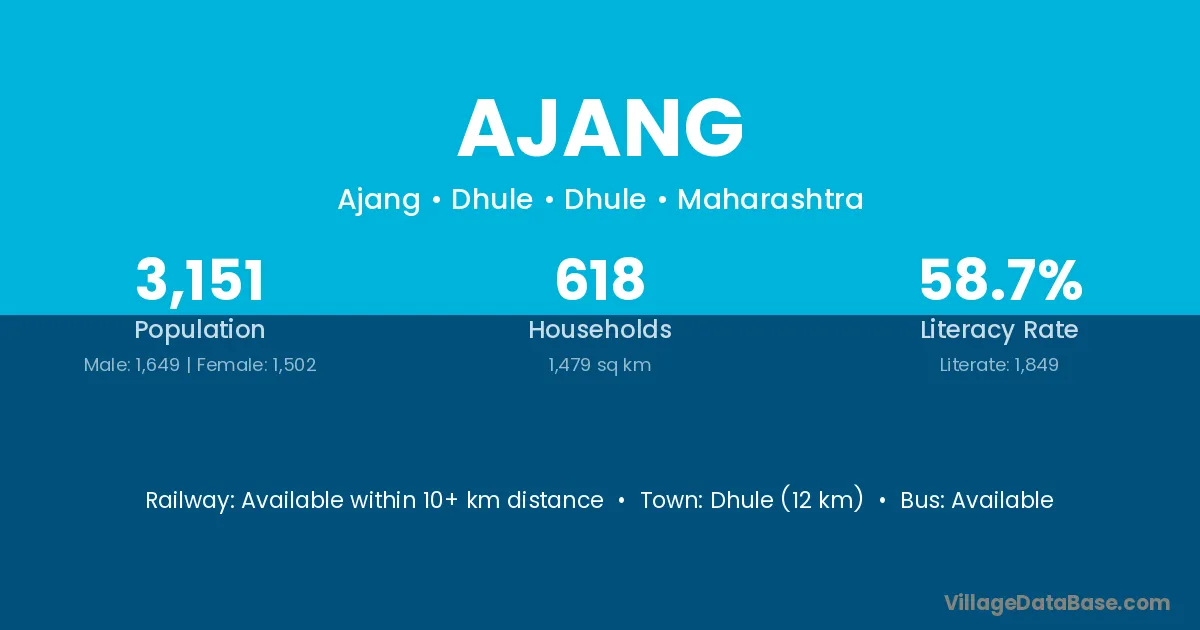 Malegaon (10 km) is the nearest town to Ajang village for major economic activities and is located approximately 10 km away.