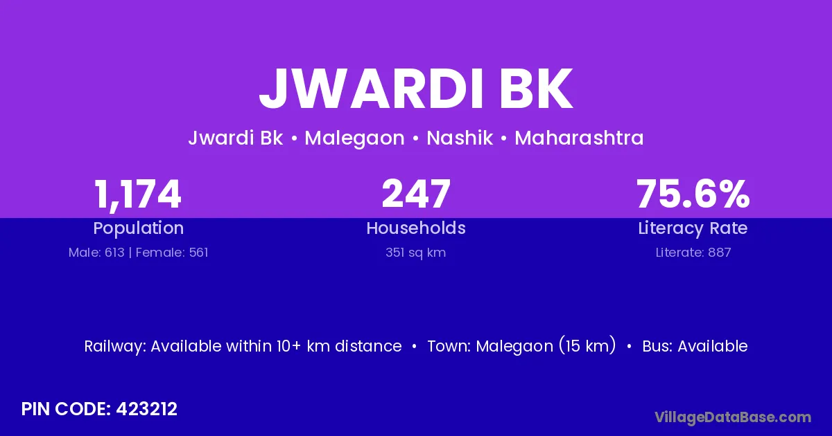 Malegaon (15 km) is the nearest town to Jwardi Bk village for major economic activities and is located approximately 15 km away.