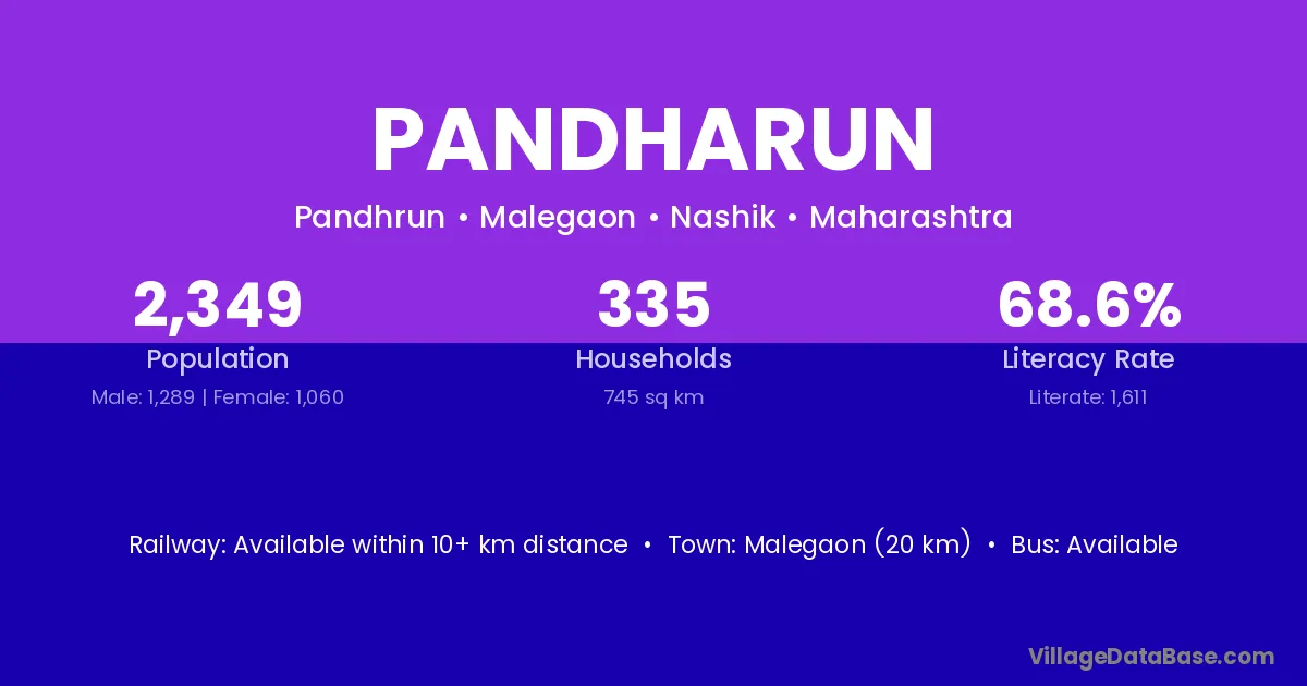Malegaon (20 km) is the nearest town to Pandharun village for major economic activities and is located approximately 20 km away.